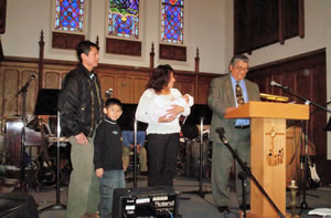 Hayde vino a nuestra iglesia con una carga muy grande en su corazón. Aunque su matrimonio transcurria en felicidad y sus cosas con normalidad, había algo que faltaba para que su alegria fuera completa y que durante cinco años esperaban con ansiedad: UN HIJO. Y ese fue el pedido que presentó ante el Señor en nuestra congregación. Oramos con convicción y fervor al que todo lo puede y ese mismo año ellos recibieron la respuesta a su pedido. En la foto, como testimonio impreso, están presentado a su segundo hijo, una hermosa niña que nuestro buen Dios y Señor Jesucristo les ha concedido.
